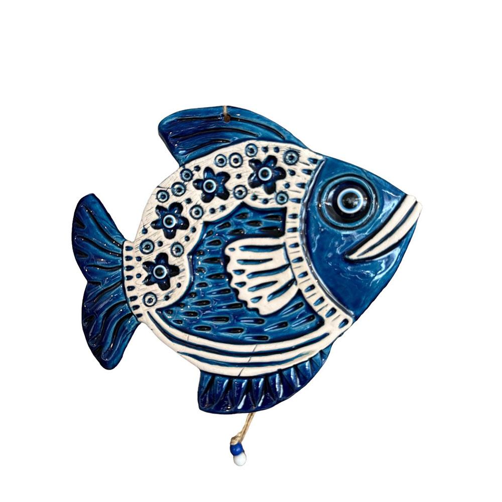Çiçek Desenli Balık Seramik Duvar Aksesuarı