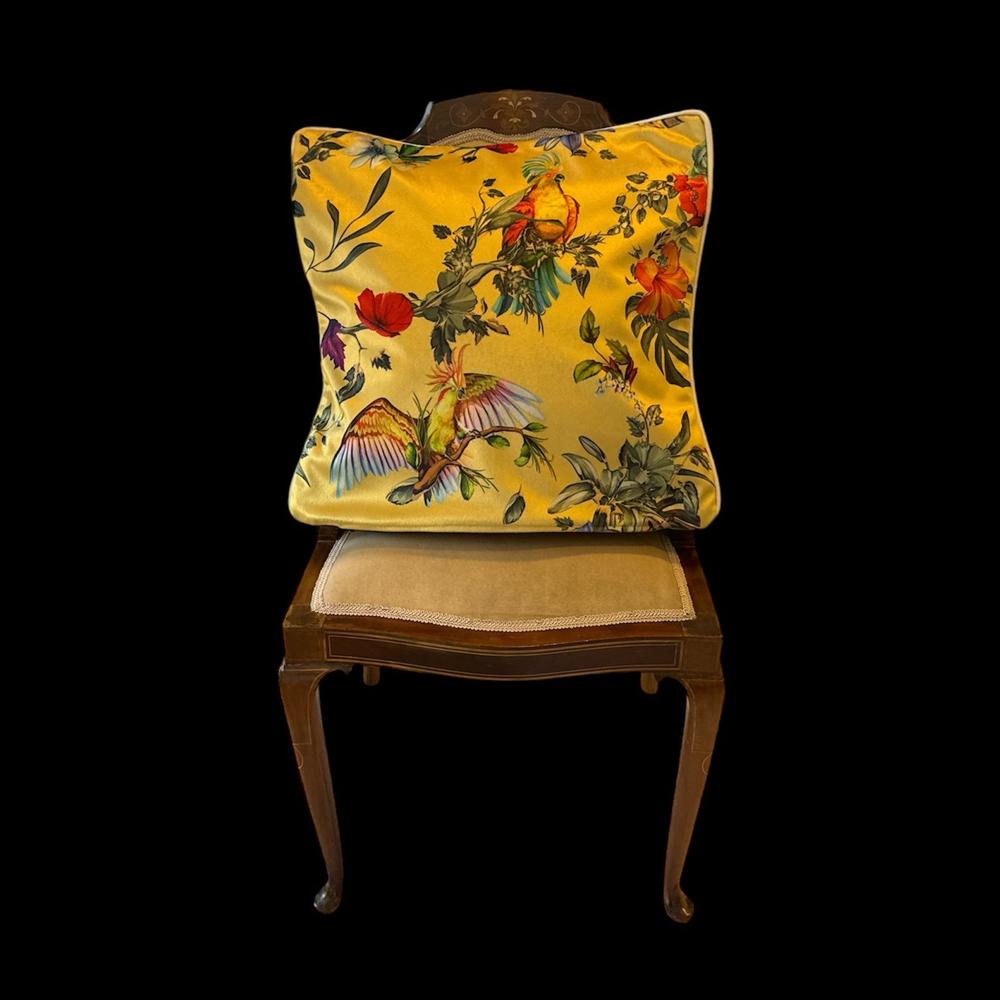 Papağanlı Sarı Kırlent Yastık Kılıfı