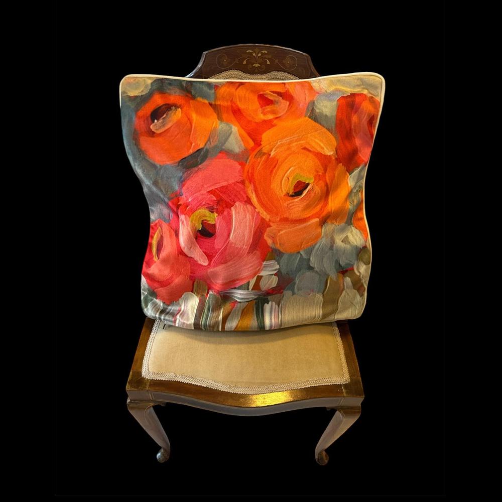 Turuncu ve Pembe Çiçekli Kırlent Yastık Kılıfı